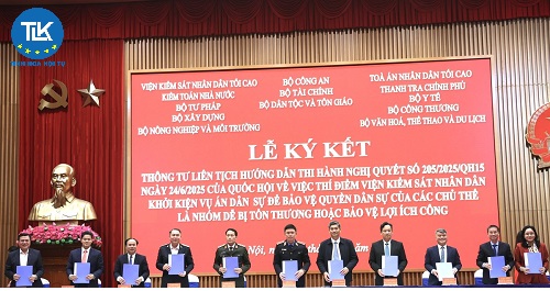 VKSND Tối cao vừa tổ chức Lễ ký kết Thông tư liên tịch số 09 hướng dẫn thi hành Nghị quyết số 205/2025/QH15 ngày 24-6-2025 của Quốc hội về việc thí điểm VKSND khởi kiện vụ án dân sự để bảo vệ quyền dân sự của các chủ thể là nhóm dễ bị tổn thương hoặc bảo vệ lợi ích công (Nghị quyết số 205).